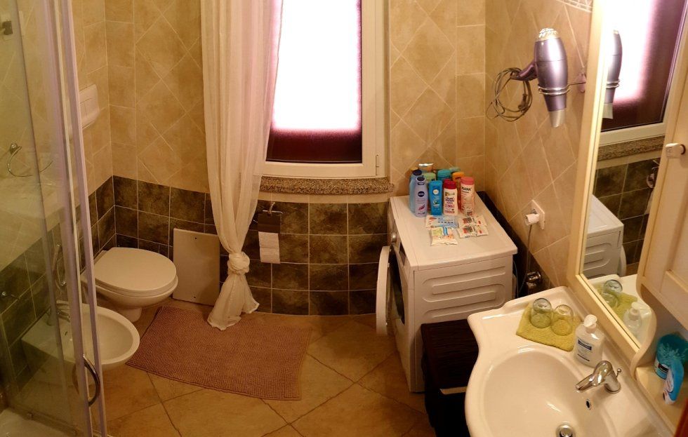 Das Bad bietet Ihnen eine Rund-Um-Sorglos-Ausstatung. Neben den üblichen sanitären Erfordernissen steht Ihnen ein Bidet, eine Waschmaschine, Fön und frische Frottier-Textilien für Dusche und Strand zur Verfügung.